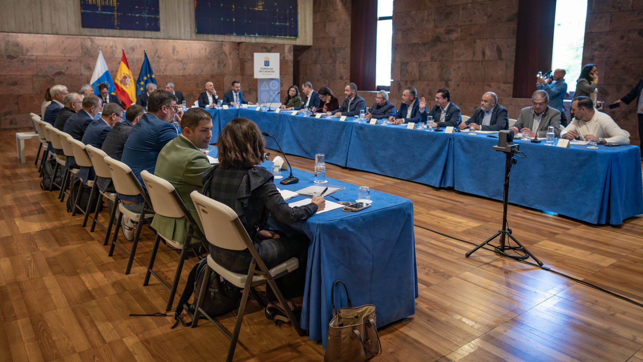 El presidente de Canarias, Fernando Clavijo, el consejero de Obras Públicas, Vivienda y Movilidad y...