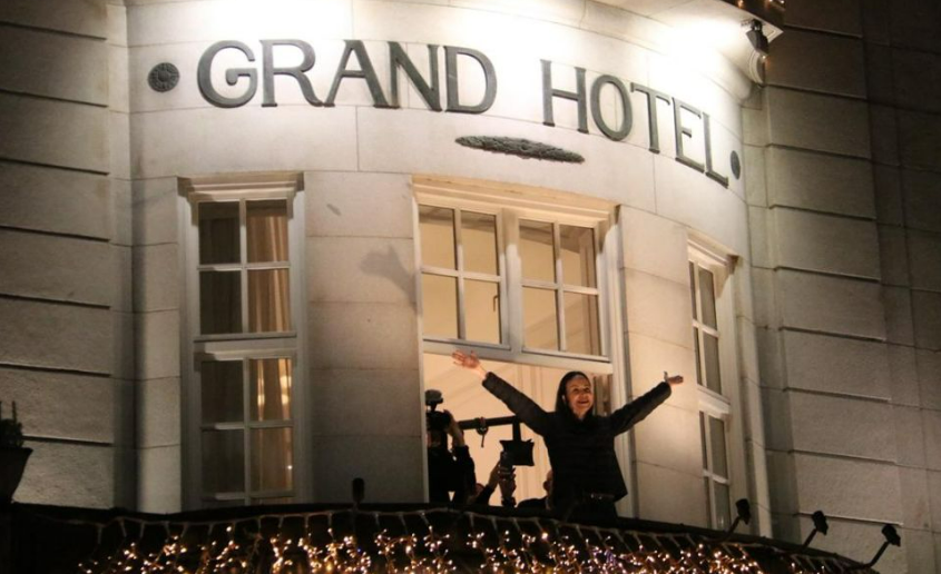 VÍDEO | El momento en el que María Corina Machado saludaba desde el Grand Hotel Oslo