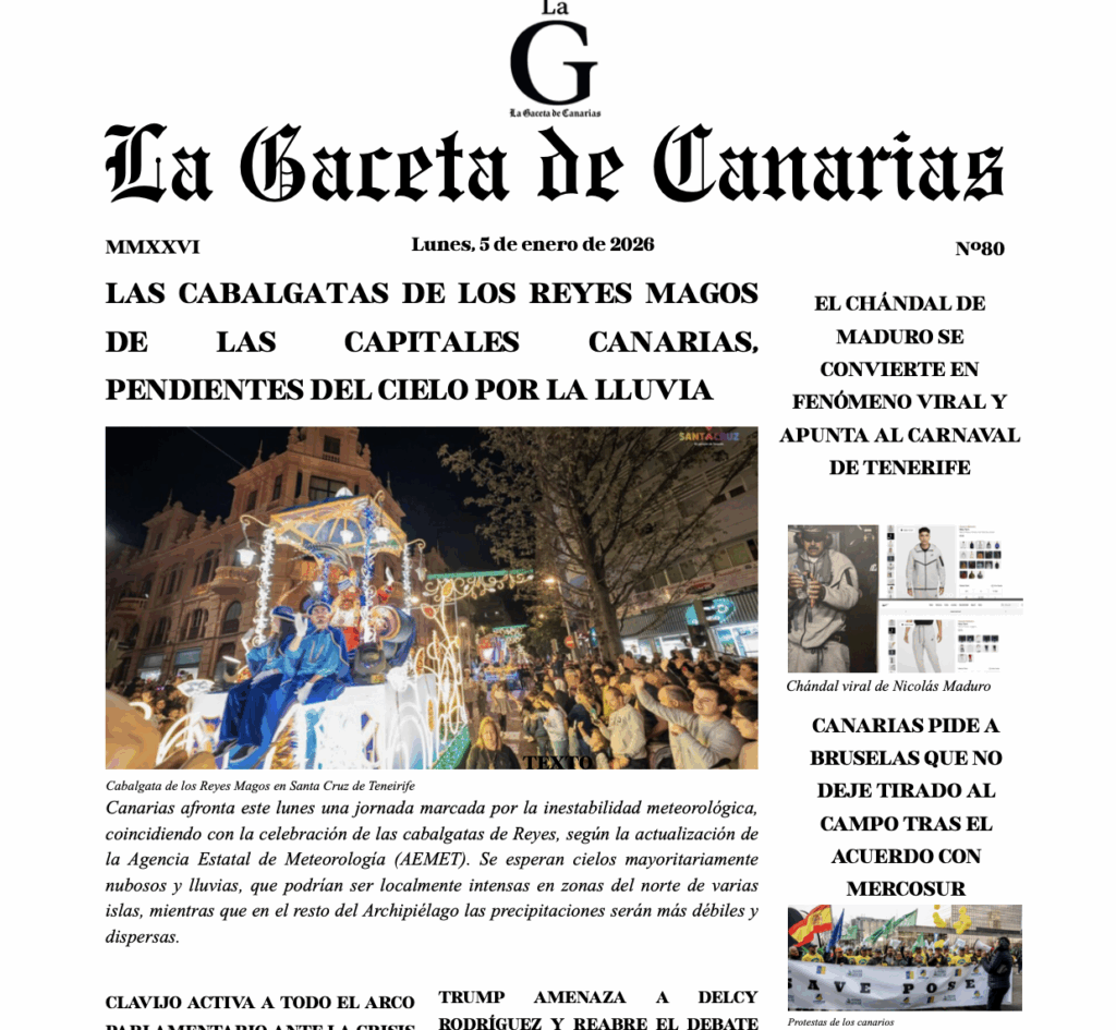 Ya está disponible la portada de La Gaceta de Canarias para este sábado 3 de enero. PORTADA LA GACETA DE CANARIAS 5 DE ENERO