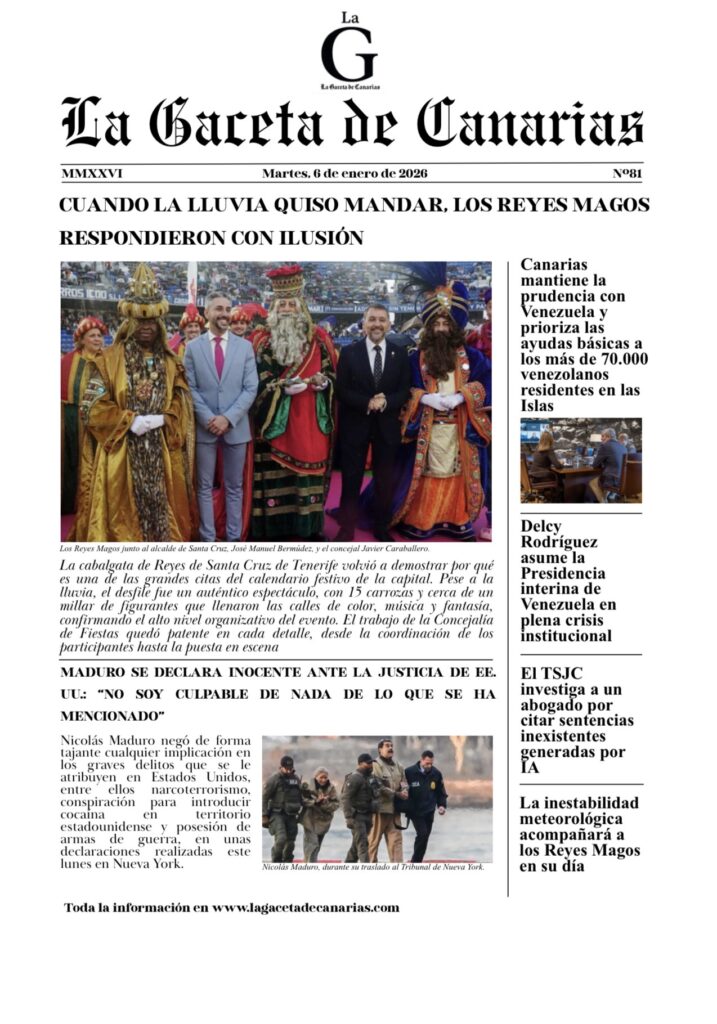 Está disponible la portada de La Gaceta de Canarias para este martes 6 de enero. Descárgala aquí. La Gaceta de Canarias 06-01-2026