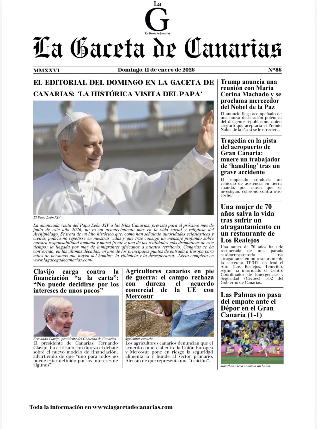 La portada de La Gaceta de Canarias para este domingo 11 de enero ya está disponible. Puedes descargarla aquí. La Gaceta 11-01-2026