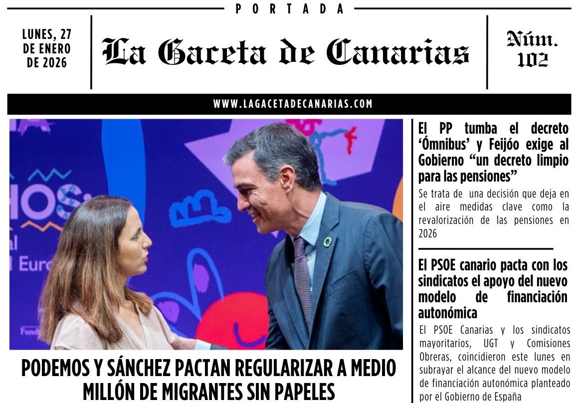 Ya está disponible la portada de La Gaceta de Canarias para este martes, 27 de enero. Puedes descargarla aquí: Portada La Gaceta de Canarias 27-01-2026