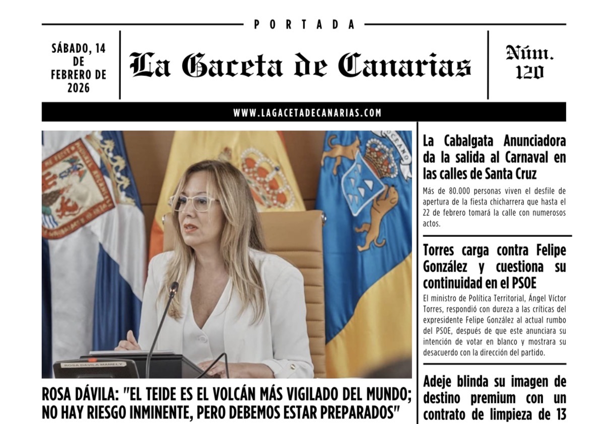Ya está disponible la portada de La Gaceta de Canarias para este sábado 14 de febrero. Descárgala aquí La Gaceta de Canarias 14-02-2026
