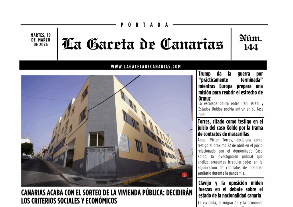 La portada de La Gaceta de Canarias para este martes 10 de marzo de 2026 ya está disponible. PORTADA LA GACETA DE CANARIAS MARTES 10 DE MARZO
