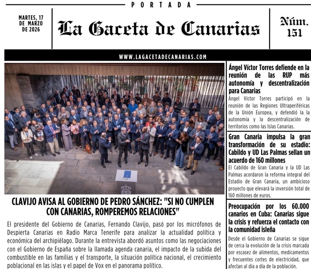 Ya puedes descargar la portada de La Gaceta de Canarias para este martes, 17 de marzo. PORTADA LA GACETA DE CANARIAS MARTES, 17 DE MARZO