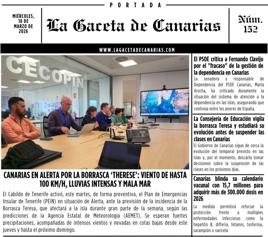Ya puedes descargar la portada de La Gaceta de Canarias para este miércoles, 18 de marzo PORTADA LA GACETA DE CANARIAS MIÉRCOLES, 18 DE MARZO