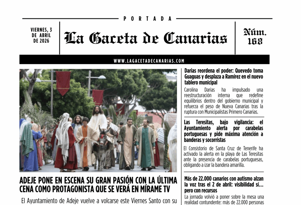 La portada de La Gaceta de Canarias para este viernes 3 de abril de 2026