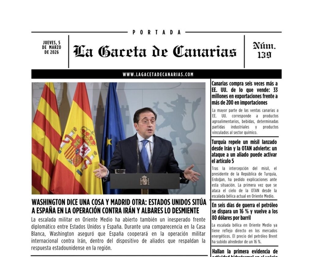 Ya puedes leer la portada de La Gaceta de Canarias para este jueves 5 de