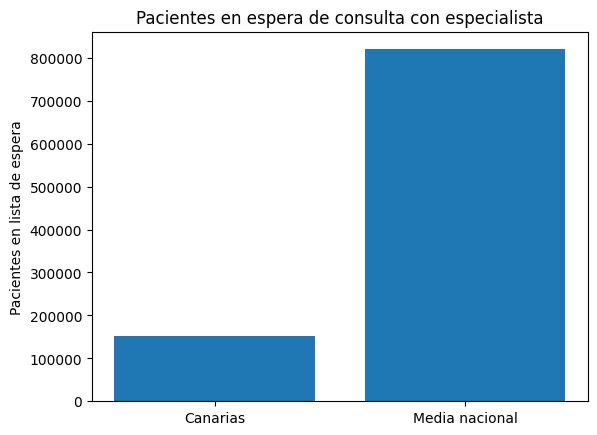 En cuanto al número de pacientes en lista de espera para consulta con un especialista, en Canarias asciende a 151.000 personas, por las 820.000 a nivel nacional.