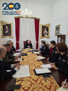 Al dia siguiente, los trabajos continuaron con reuniones institucionales en la Delegación del Gobierno, en las que participaron distintos responsables policiales para avanzar en la planificación del dispositivo y la coordinación entre unidades.