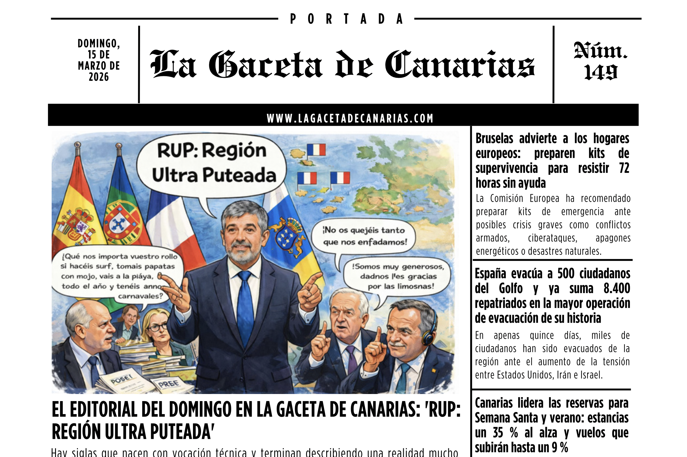 PORTADA LA GACETA DE CANARIAS DOMINGO 15 DE MARZO