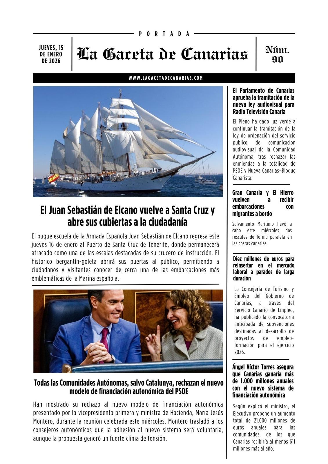 Ya está disponible la portada de La Gaceta de Canarias para este jueves, 15 de enero de 2026.