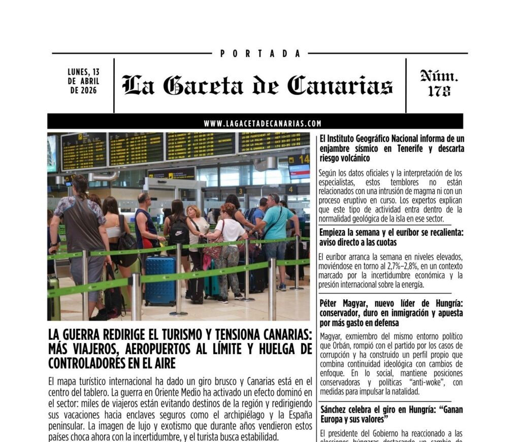 Ya está disponible la portada de La Gaceta de Canarias para este lunes 13 de abril.