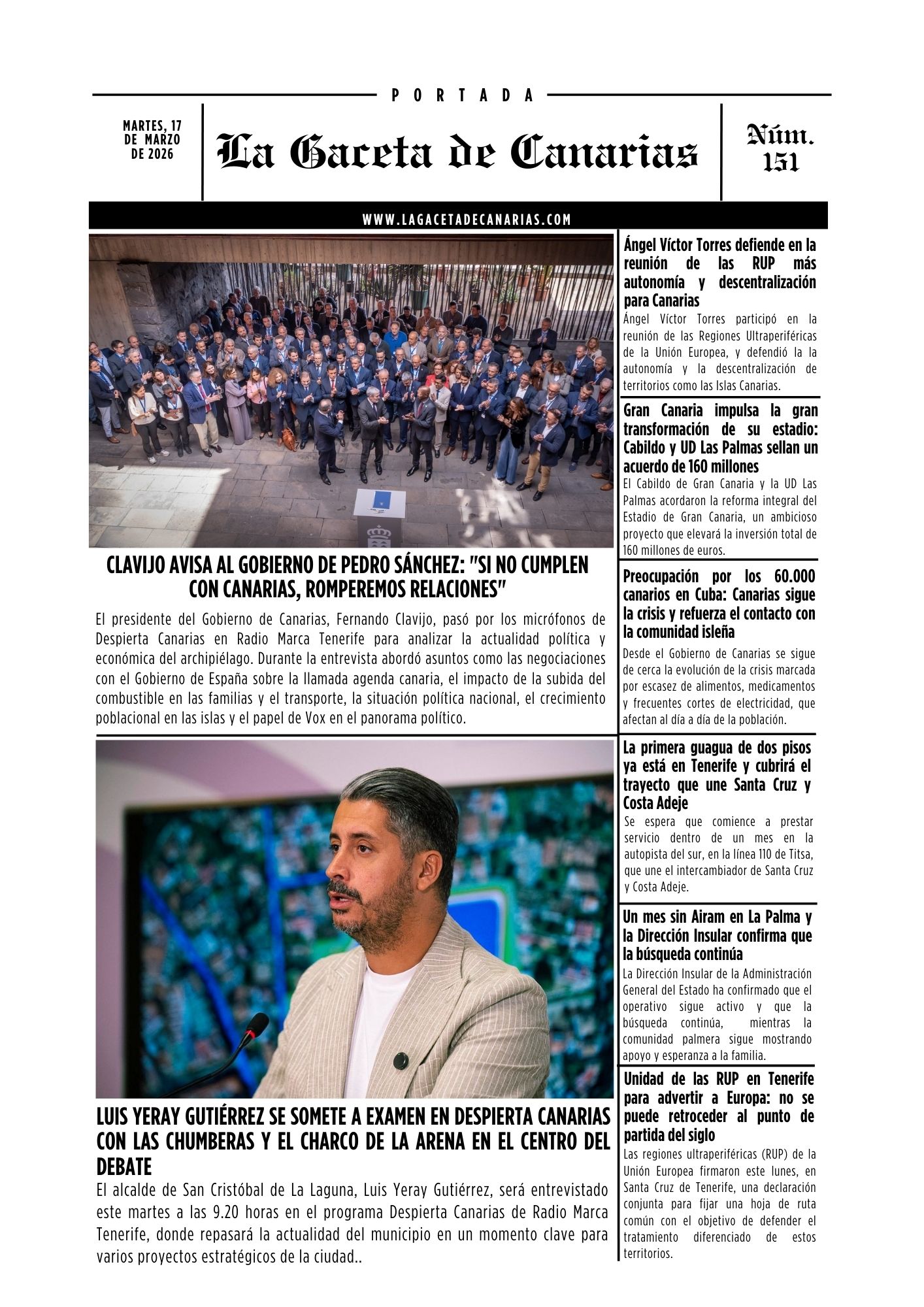 PORTADA LA GACETA DE CANARIAS MARTES, 17 DE MARZO