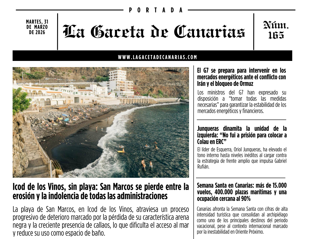 Ya puedes leer la portada de La Gaceta de Canarias para este martes 31 de marzo de 2026.
