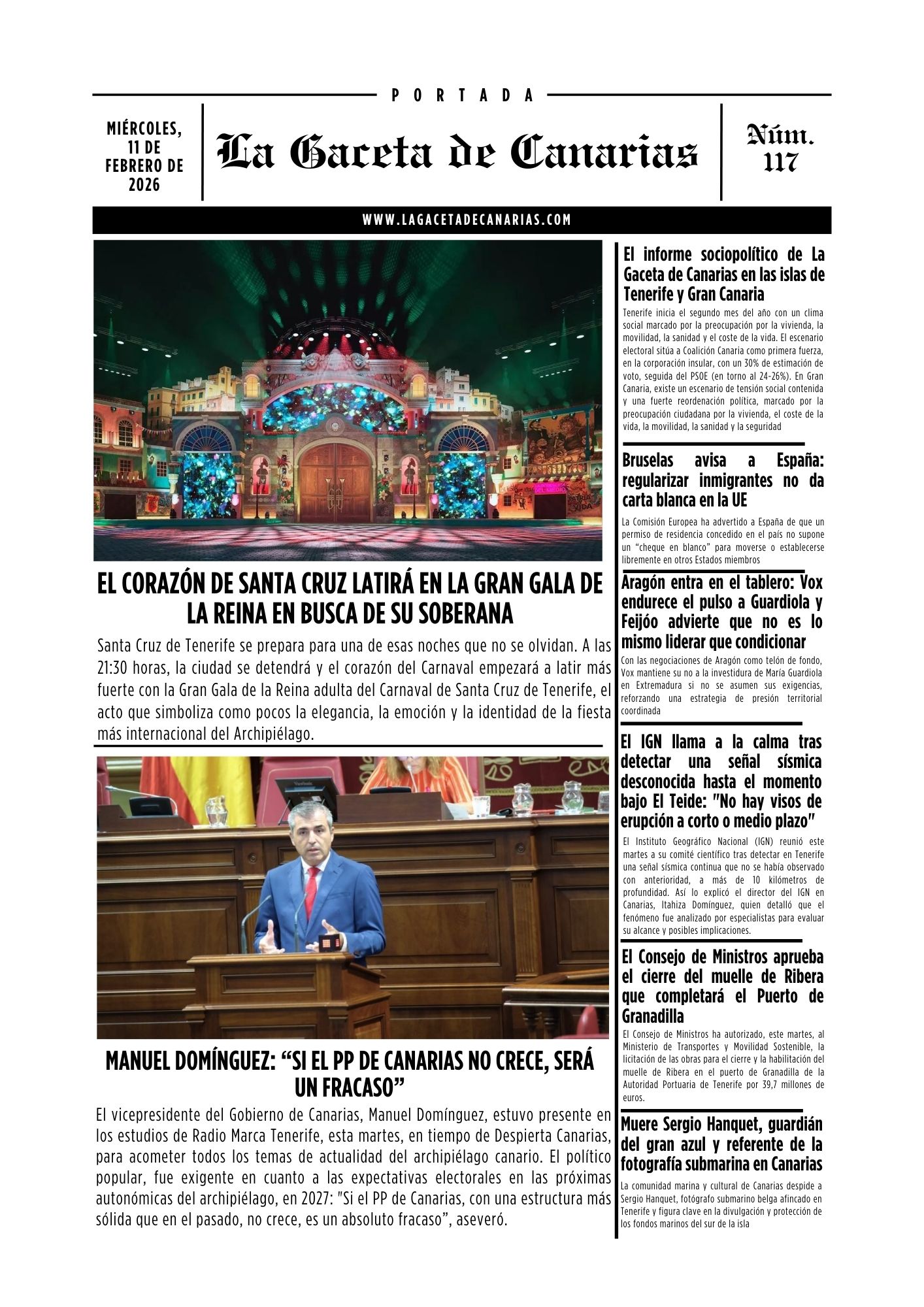 Ya está disponible la portada de La Gaceta de Canarias para este martes, 10 de febrero de 2026.