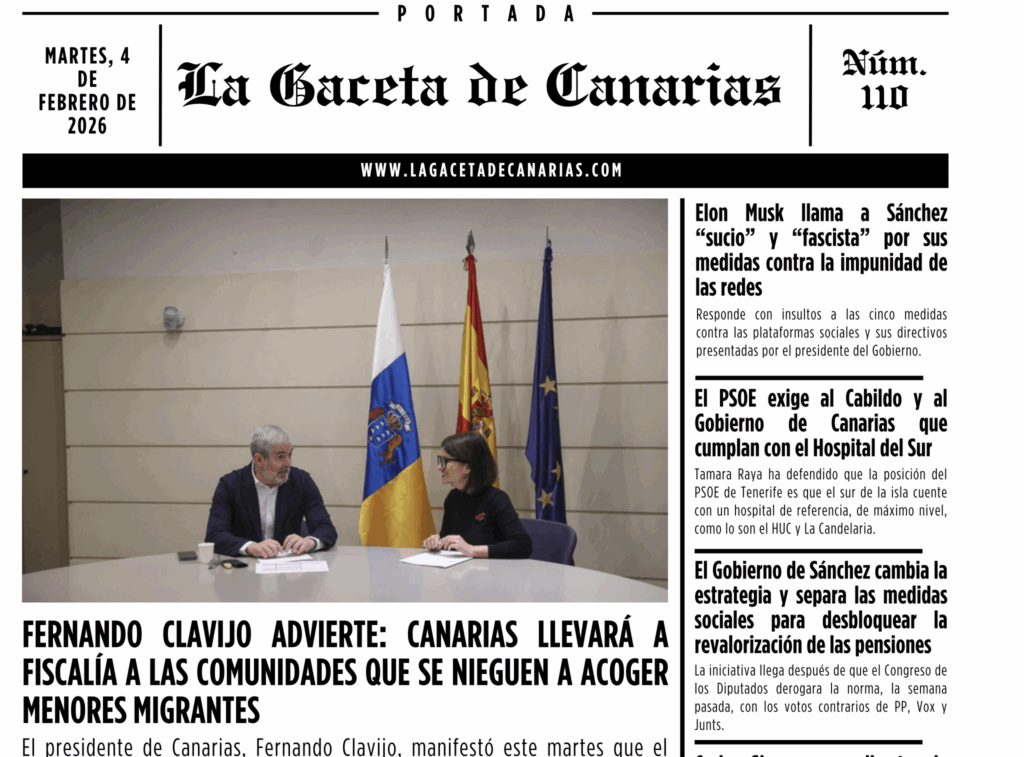 Ya está disponible la portada de La Gaceta de Canarias para este miércoles 4 de febrero.