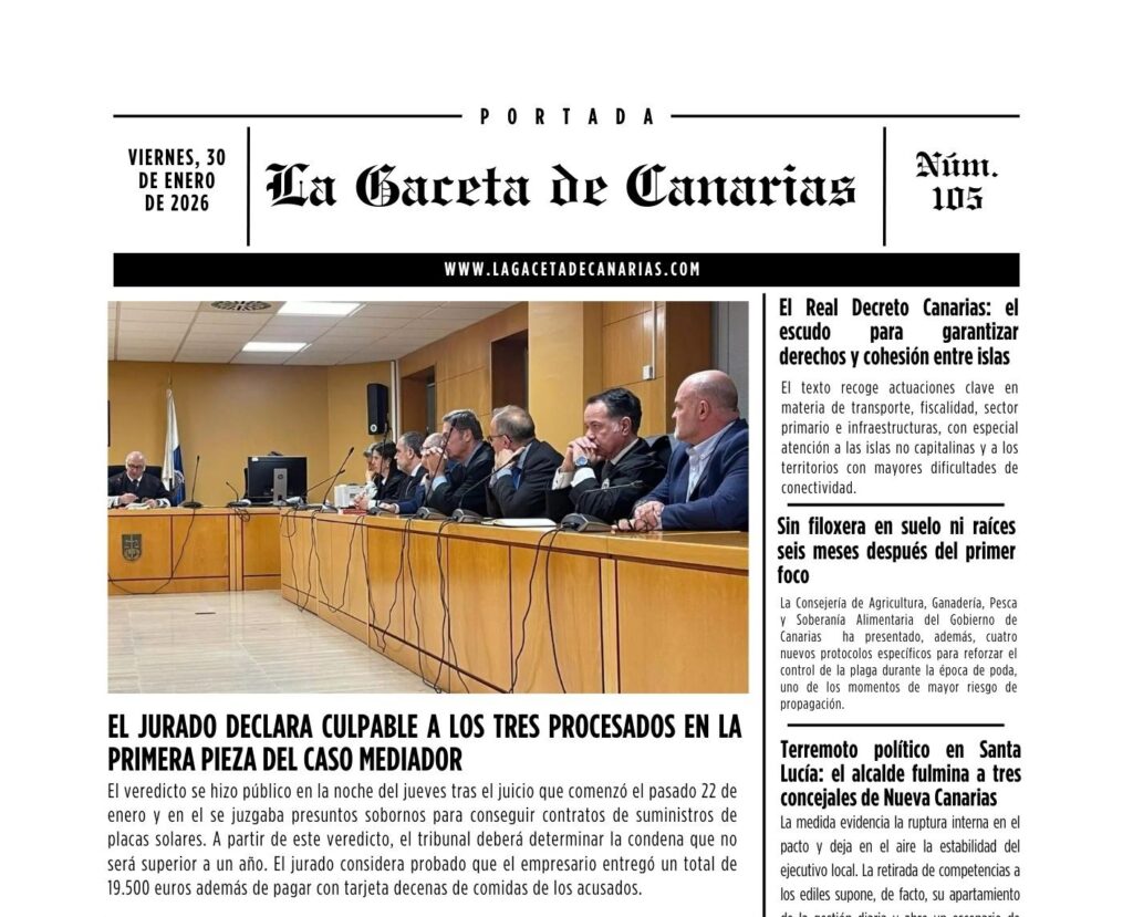 Descárgala aquí. La Portada La Gaceta de Canarias 30-01-2026