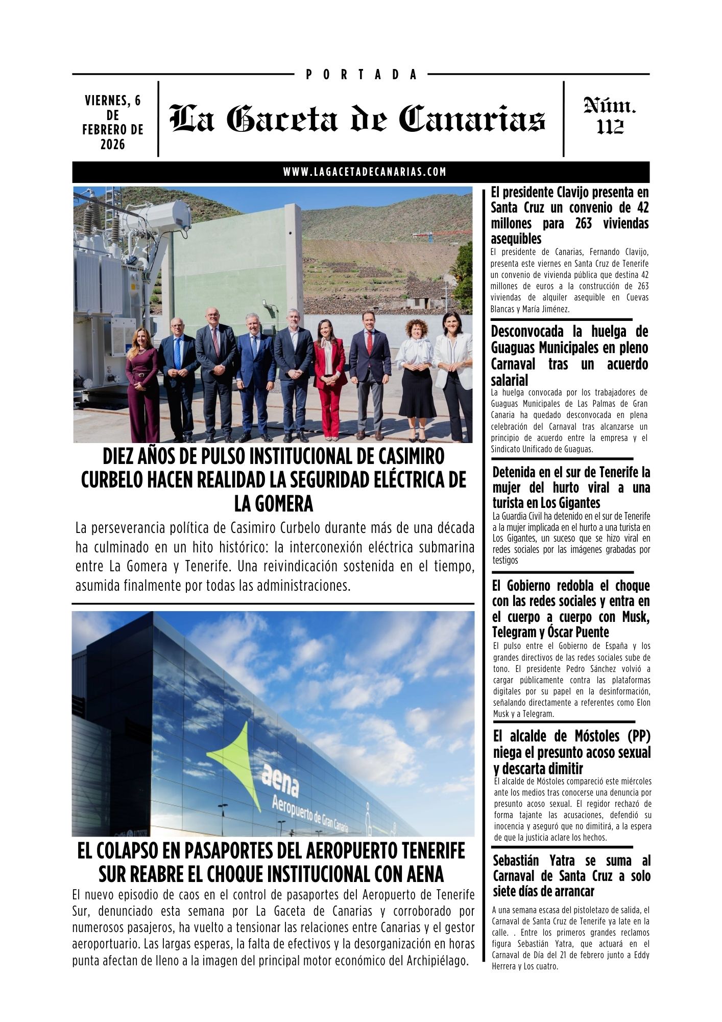 PORTADA LA GACETA DE CANARIAS VIERNES, 6 DE FEBRERO