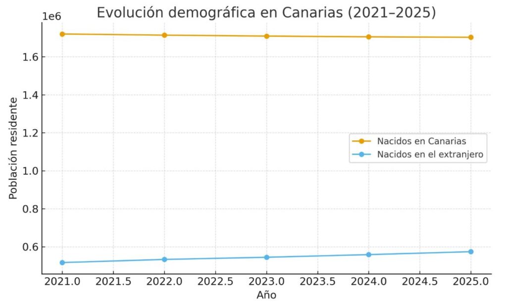 Cada mes desaparecen unos 200 canarios, y llegan alrededor de 1.400 nuevos extranjeros, lo que evidencia un cambio estructural en la composición social del Archipiélago.