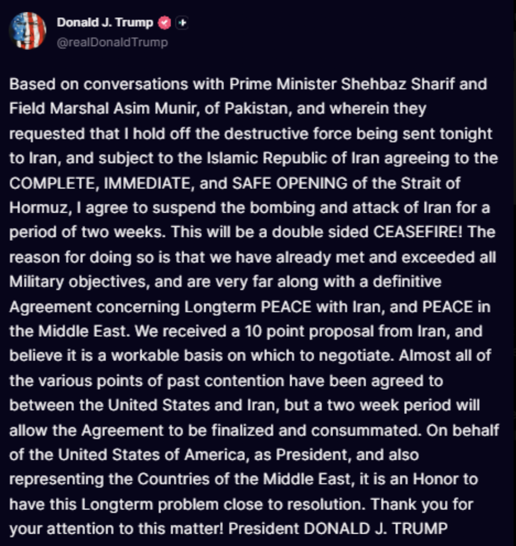 El alto el fuego, definido como “bilateral”, establece un periodo de dos semanas en el que se intensificarán las negociaciones. Un plazo que se presenta como decisivo para evitar una escalada mayor y avanzar hacia un posible acuerdo de paz duradero.